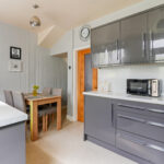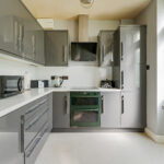 A contemporary kitchen with integrated appliances, ideal for modern living