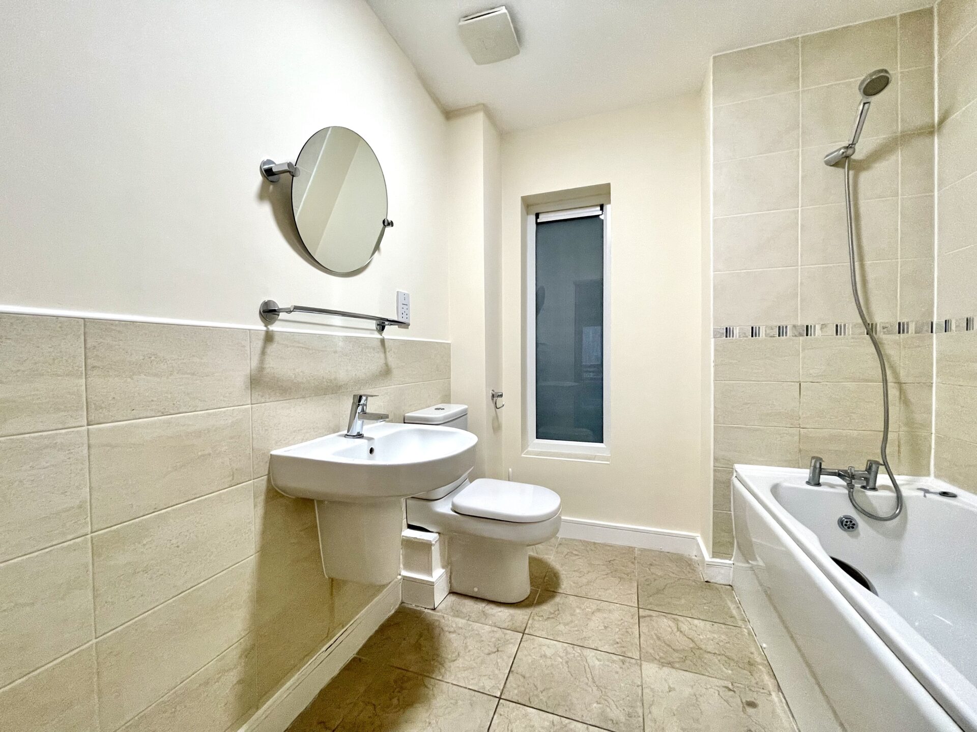 On the first floor, the master bedroom features a fitted wardrobe and en-suite shower room. There is a second well-proportioned bedroom along with a modern, generously sized main bathroom.