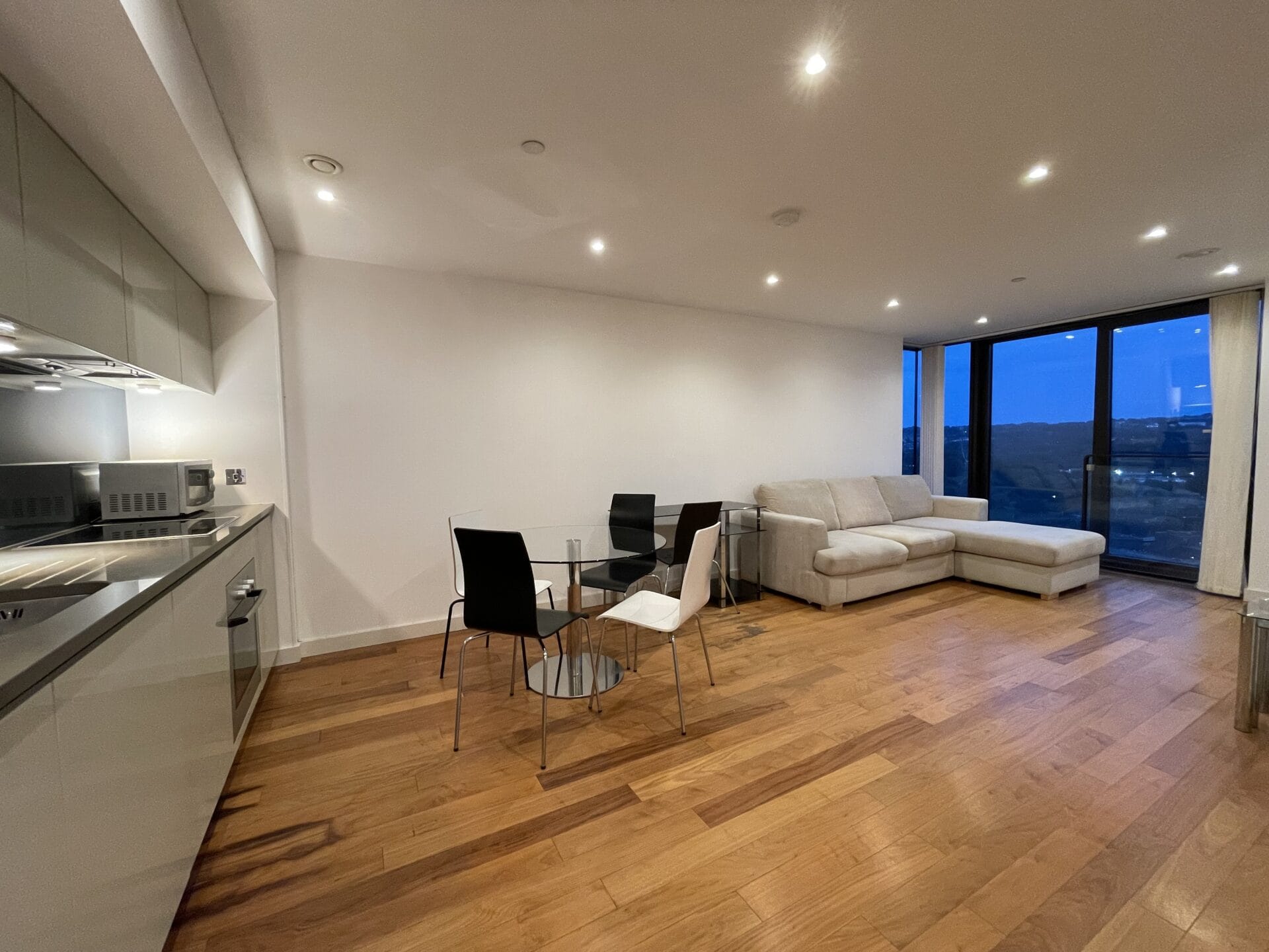 An exceptional two-bedroom apartment is available in the prestigious St Paul's City Lofts complex. This apartment is designed for discerning professionals and couples. The Conran inspired apartment is located in the best location in Sheffield and is fitted with high-quality amenities throughout. It features a spacious lounge dining area, a modern kitchen with top-quality appliances such as a fridge, freezer, dishwasher, and washer dryer.