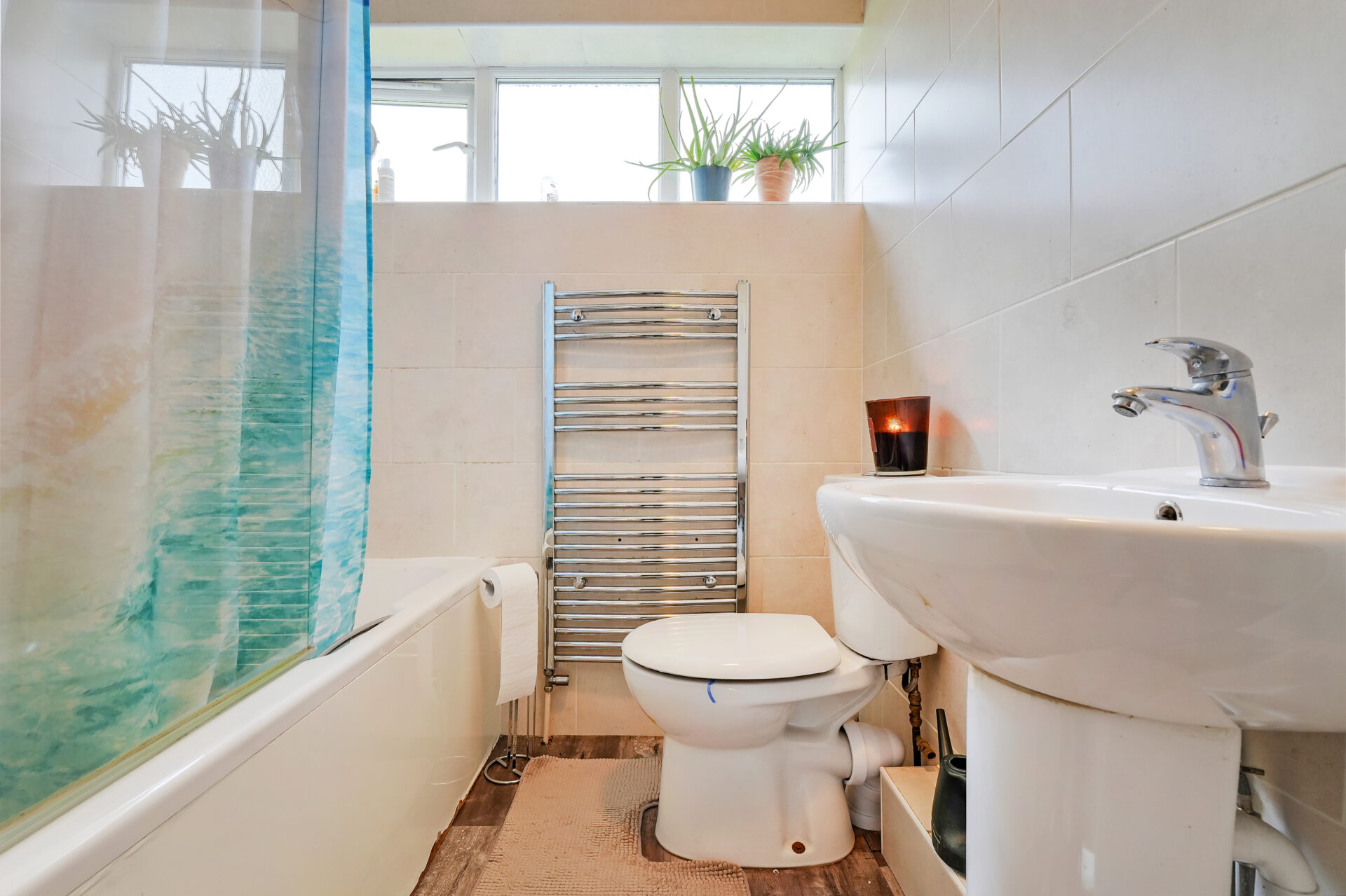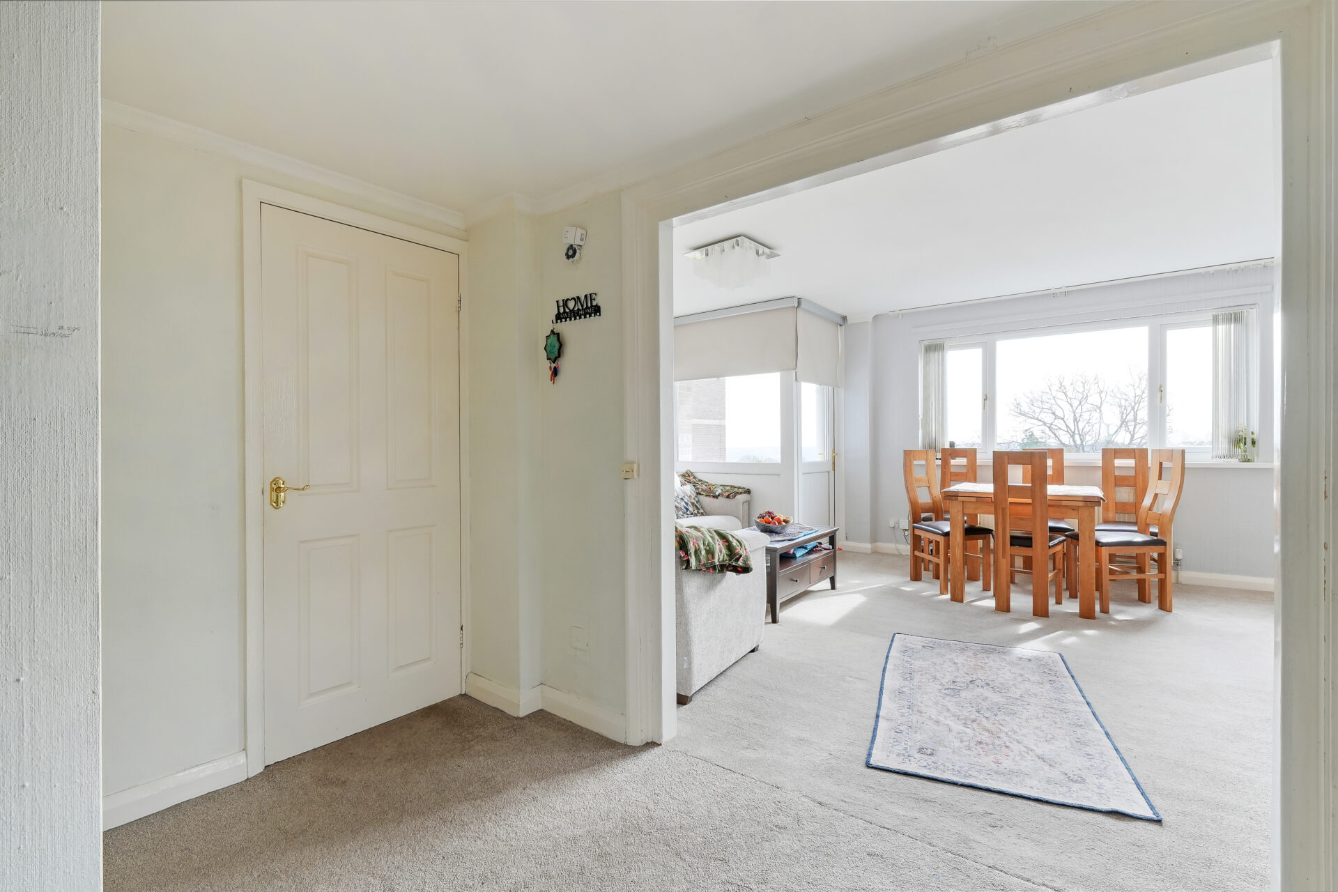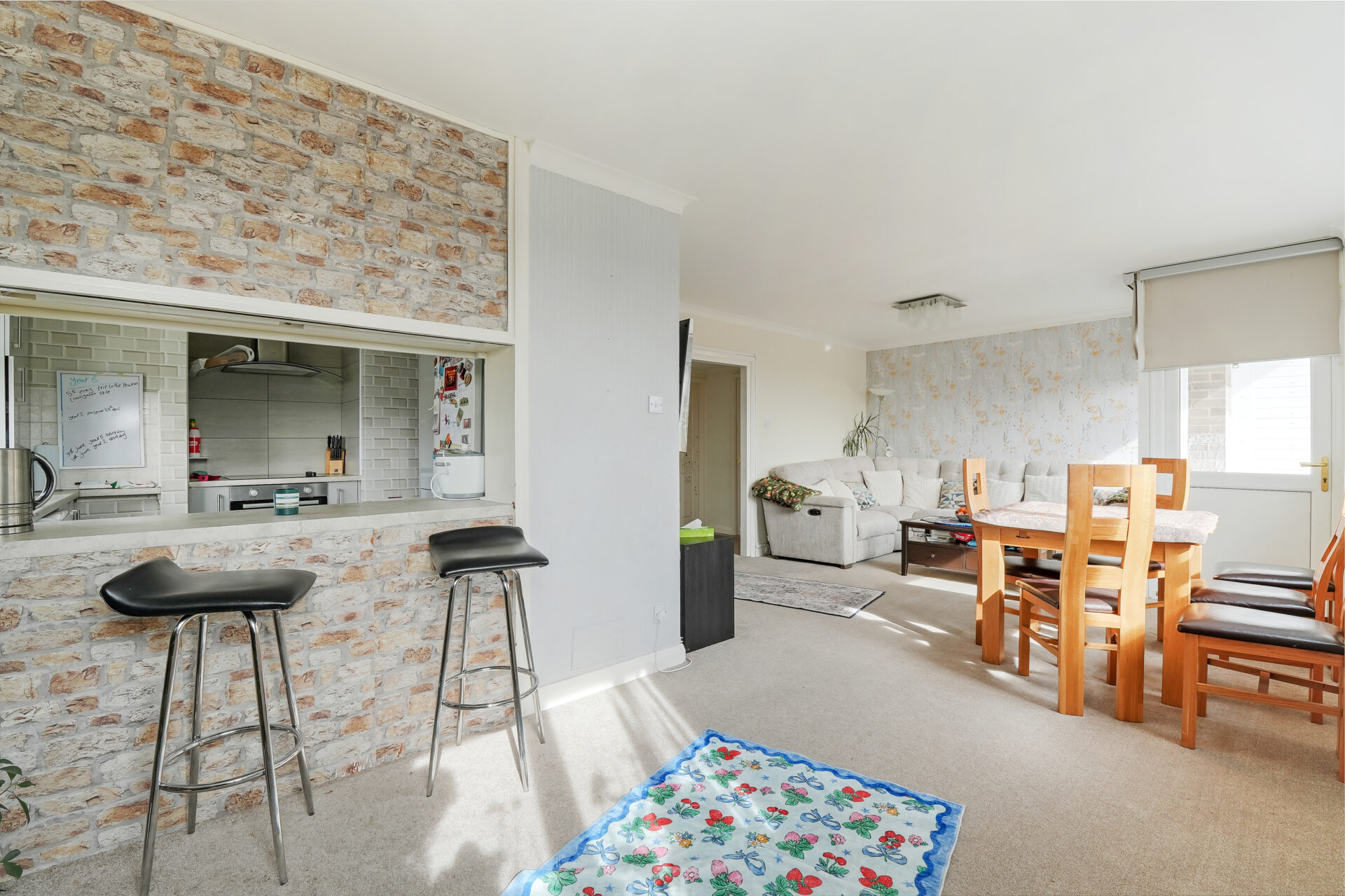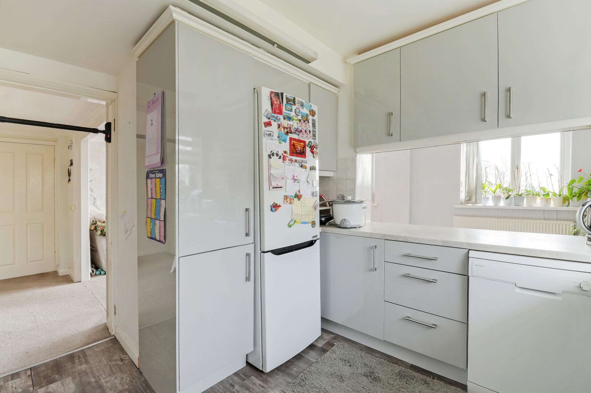 There are two generously sized double bedrooms, both complete with fitted wardrobes, providing excellent built-in storage. A neatly presented three-piece bathroom, along with additional storage in the hallway, enhances the practicality of the home. The apartment also benefits from a single garage, located within the development.