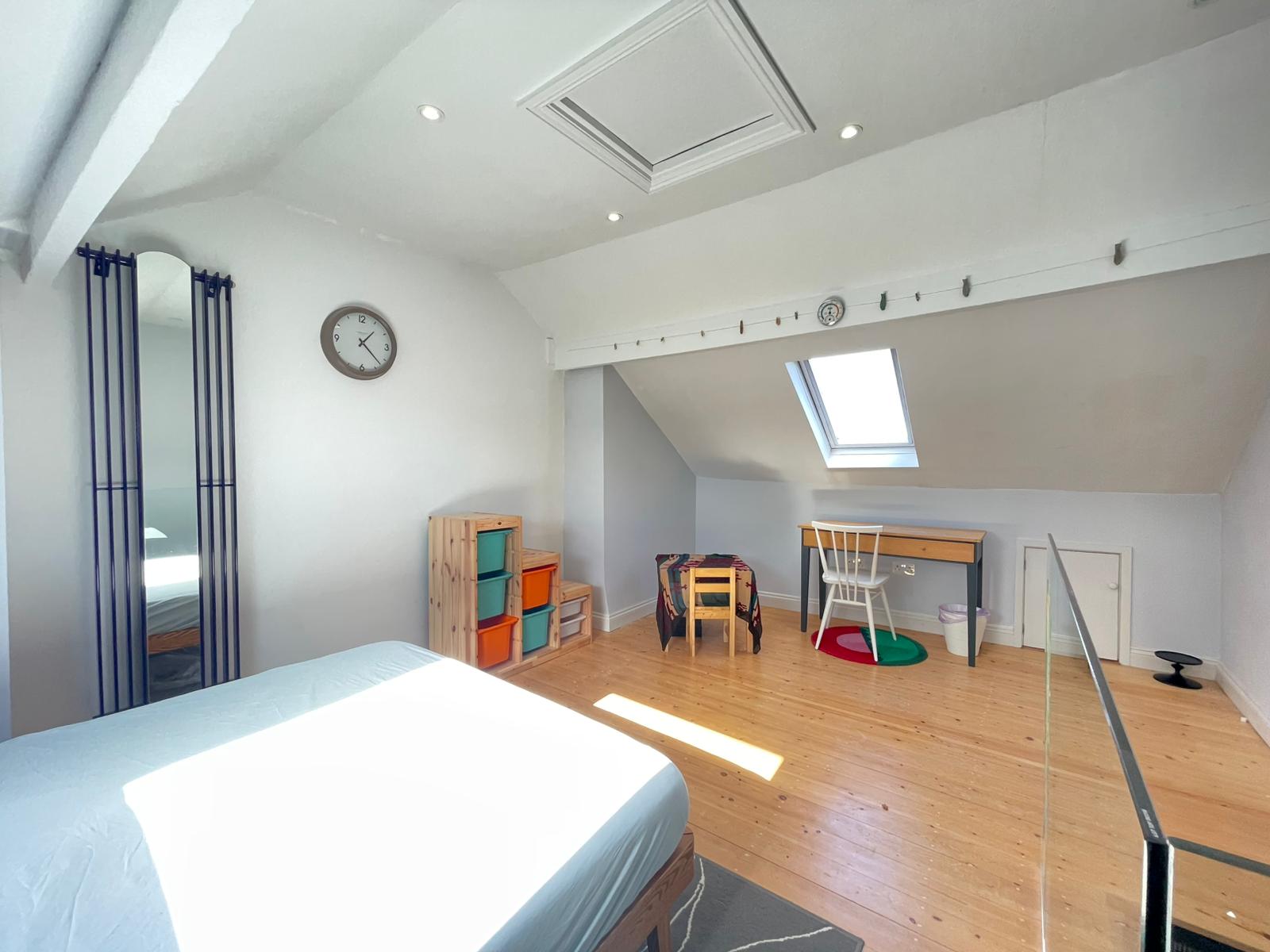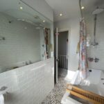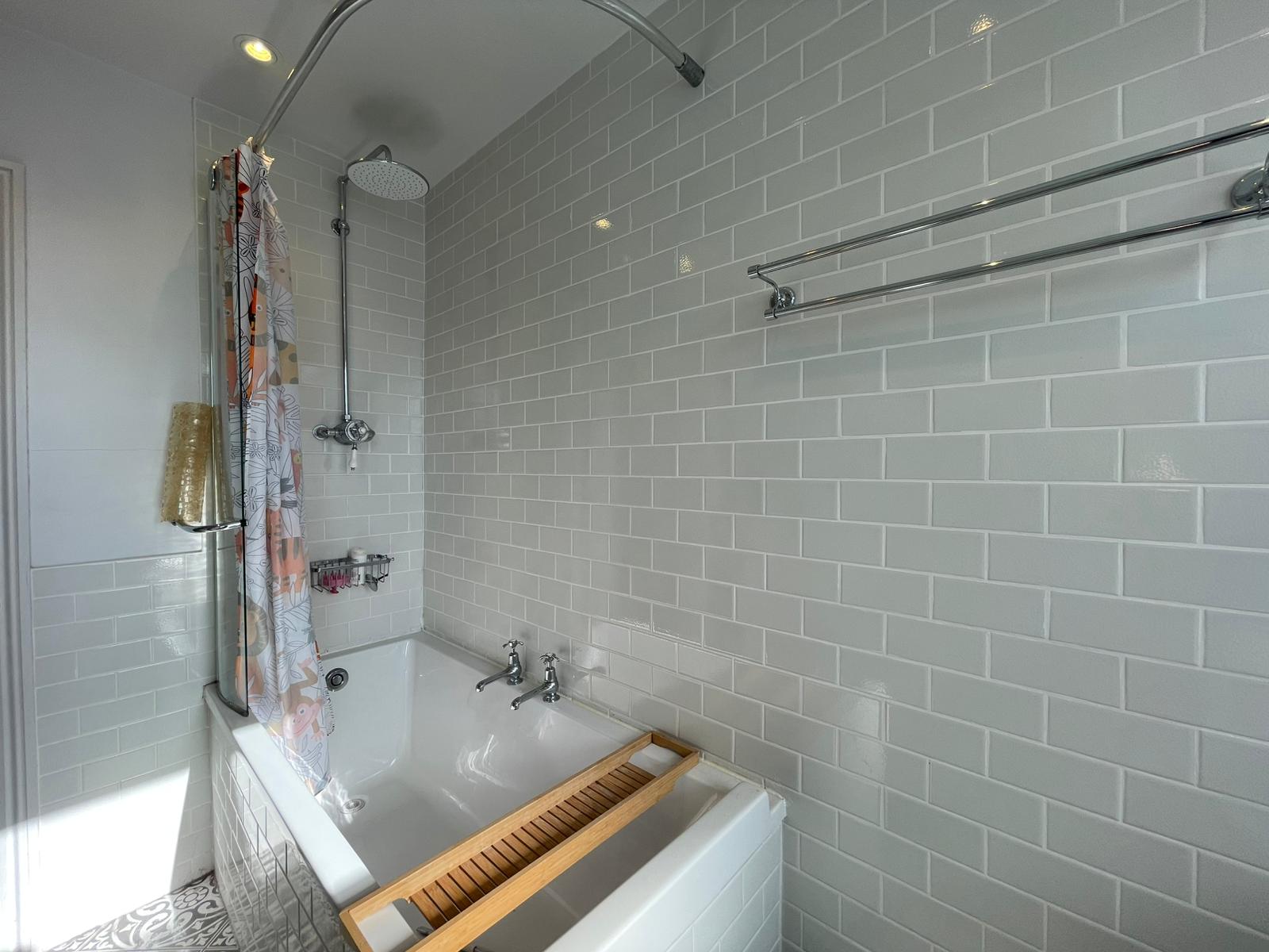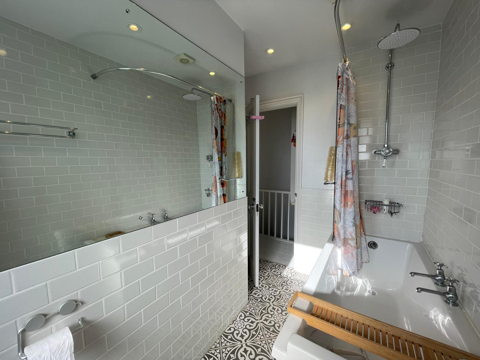 Upstairs, you’ll find three comfortable bedrooms ideal for a family, and a stylish bathroom complete with metro tiles, patterned flooring, and a rainfall shower over the bath.