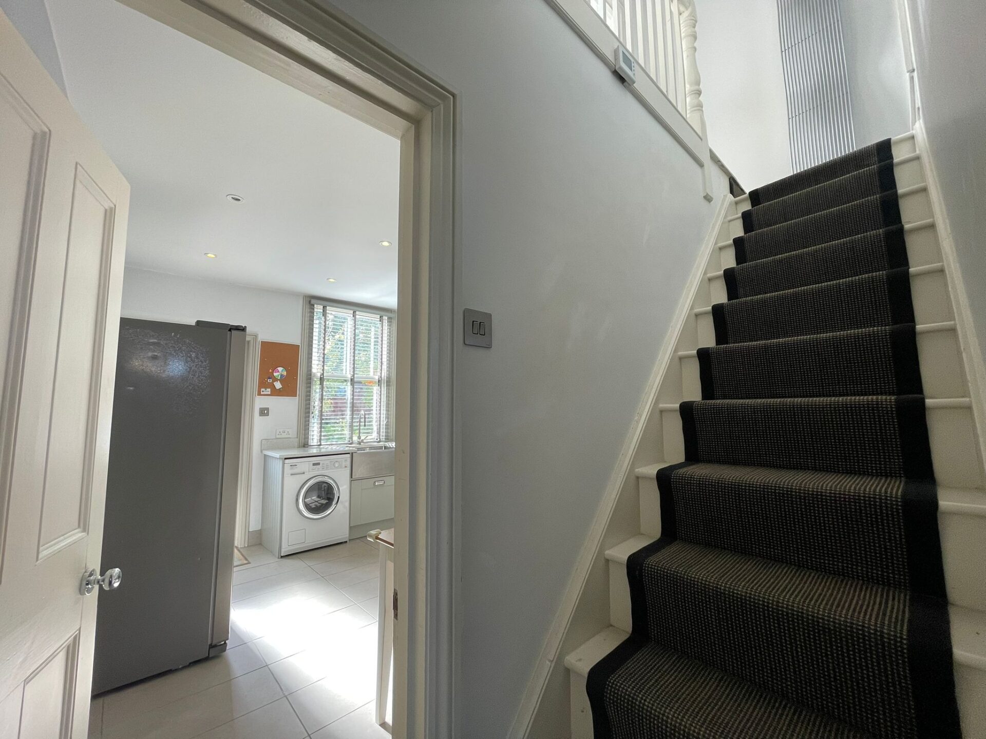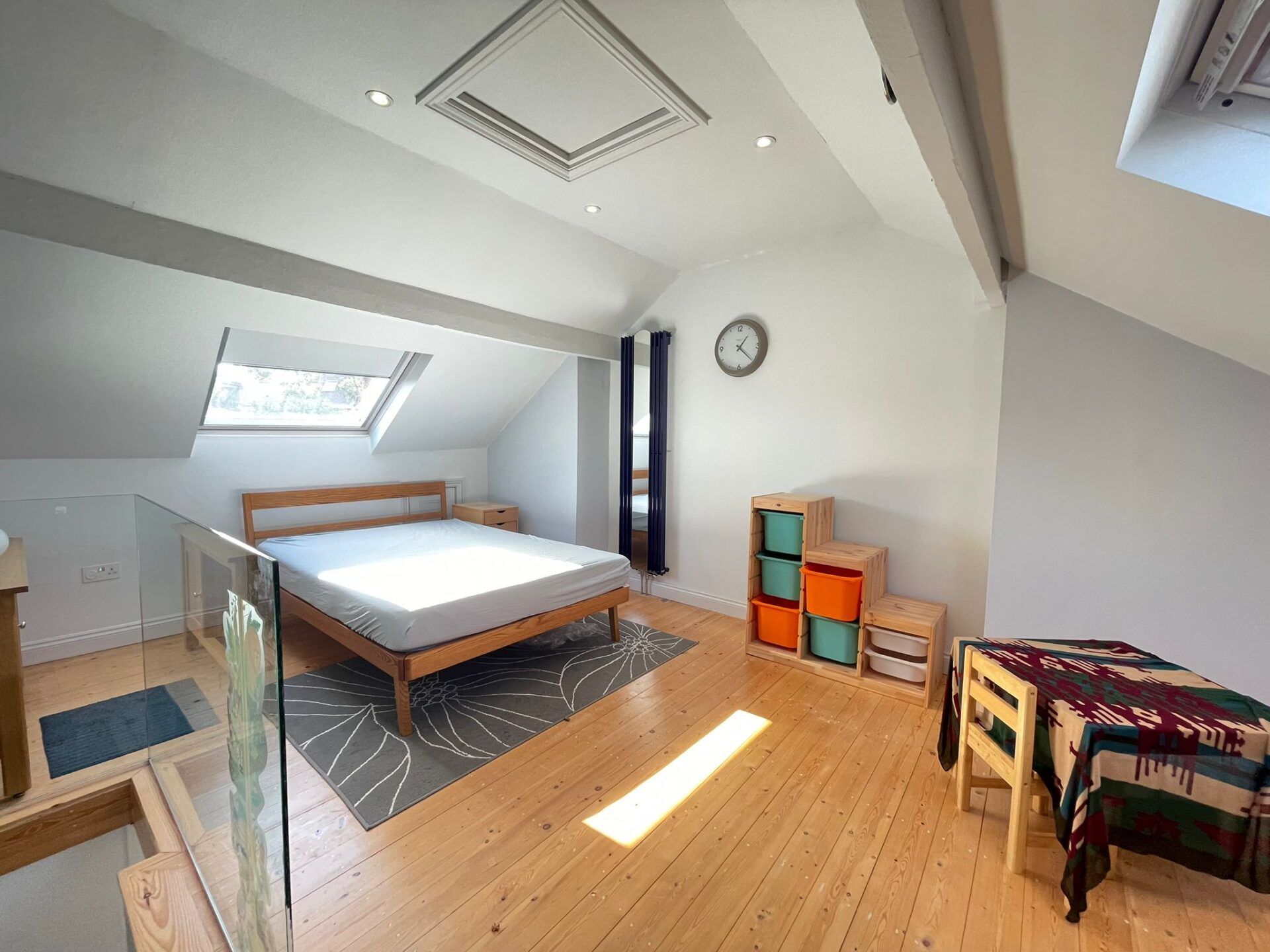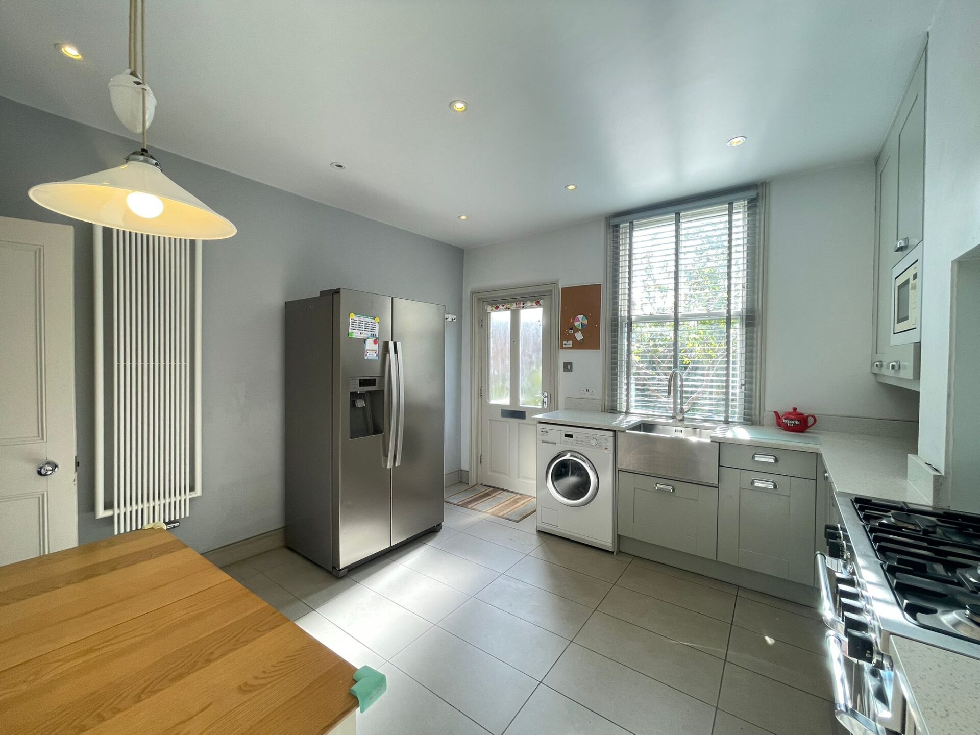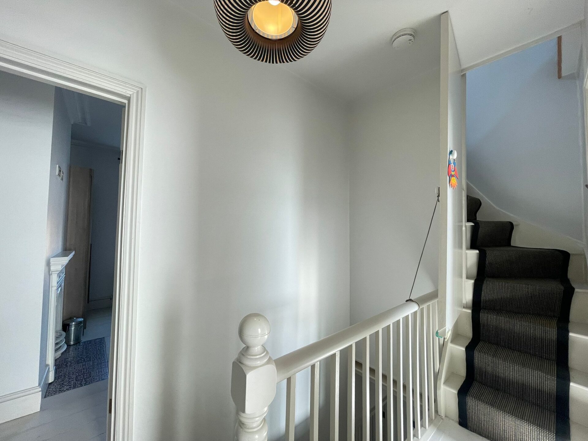Upstairs, you’ll find three comfortable bedrooms ideal for a family, and a stylish bathroom complete with metro tiles, patterned flooring, and a rainfall shower over the bath.