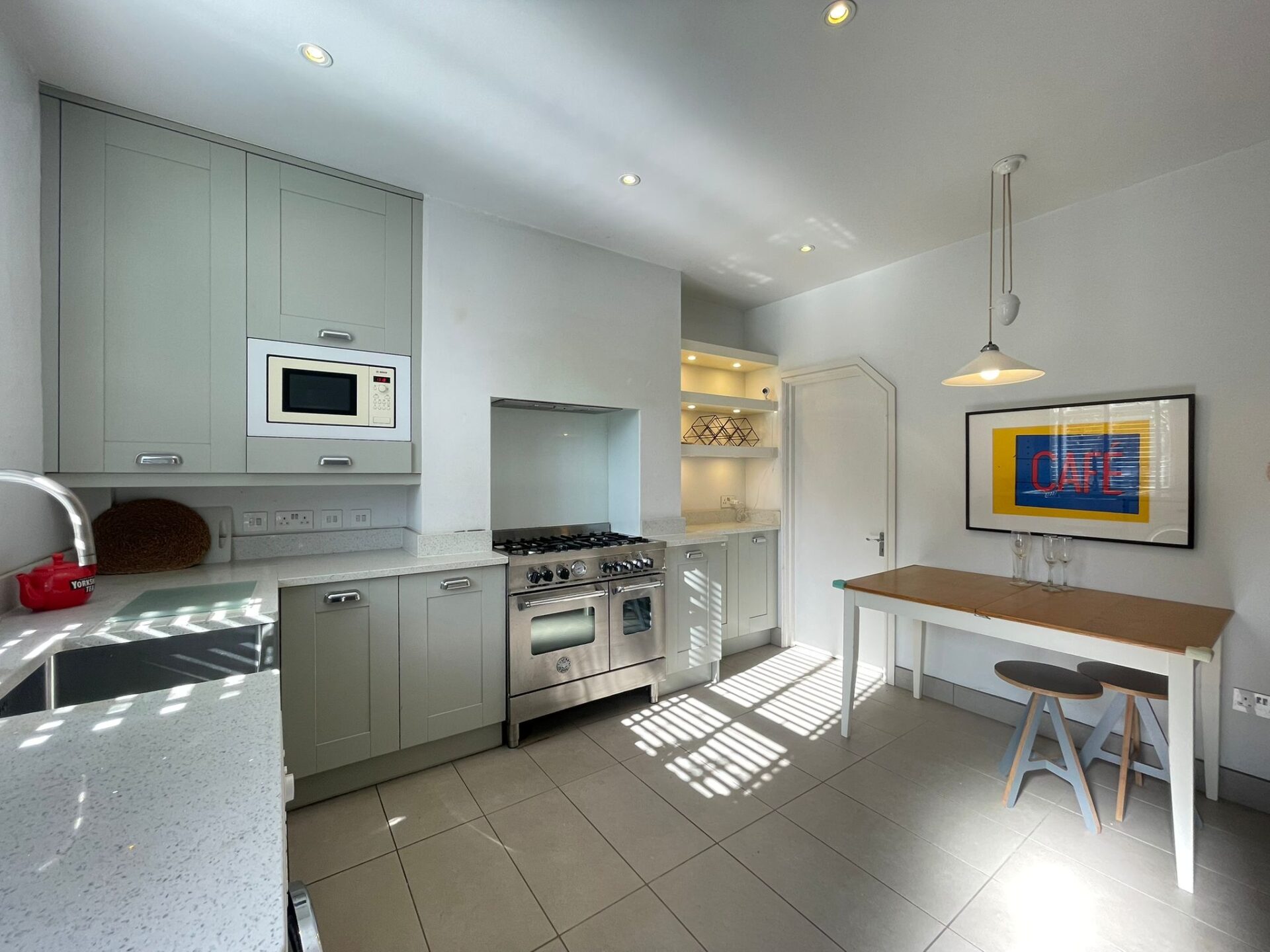 This delightful stone-built terrace welcomes you with a charming front garden and smart entrance. Inside, the home opens to a light-filled kitchen/dining area, featuring modern cabinetry, a farmhouse sink, and integrated appliances including a large range cooker.