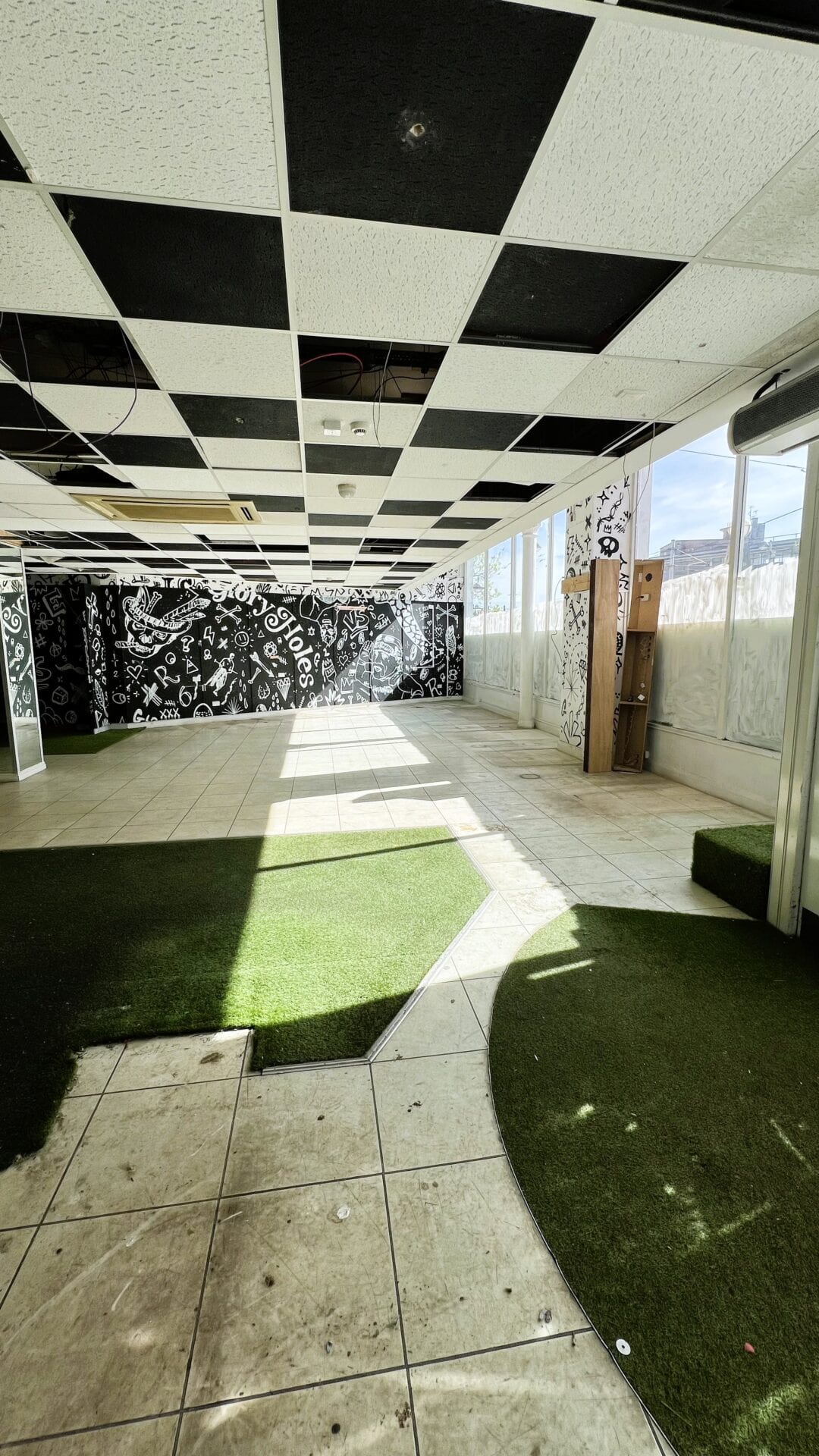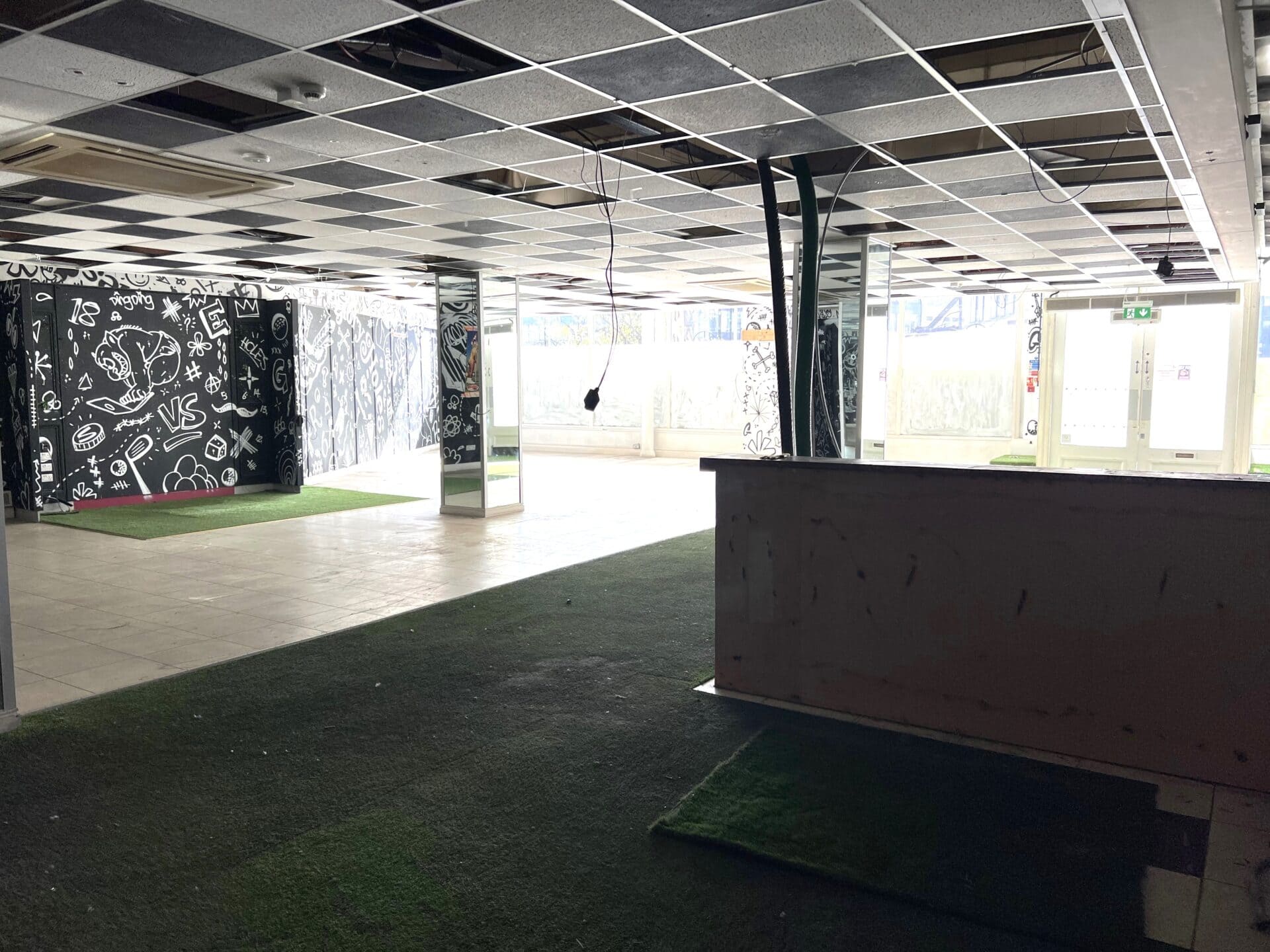 A large open Plan Ground Floor Retail unit, Previously used as a Indoor crazy golf area, The unit is approximately 2337 Sq. ft including small storage areas.