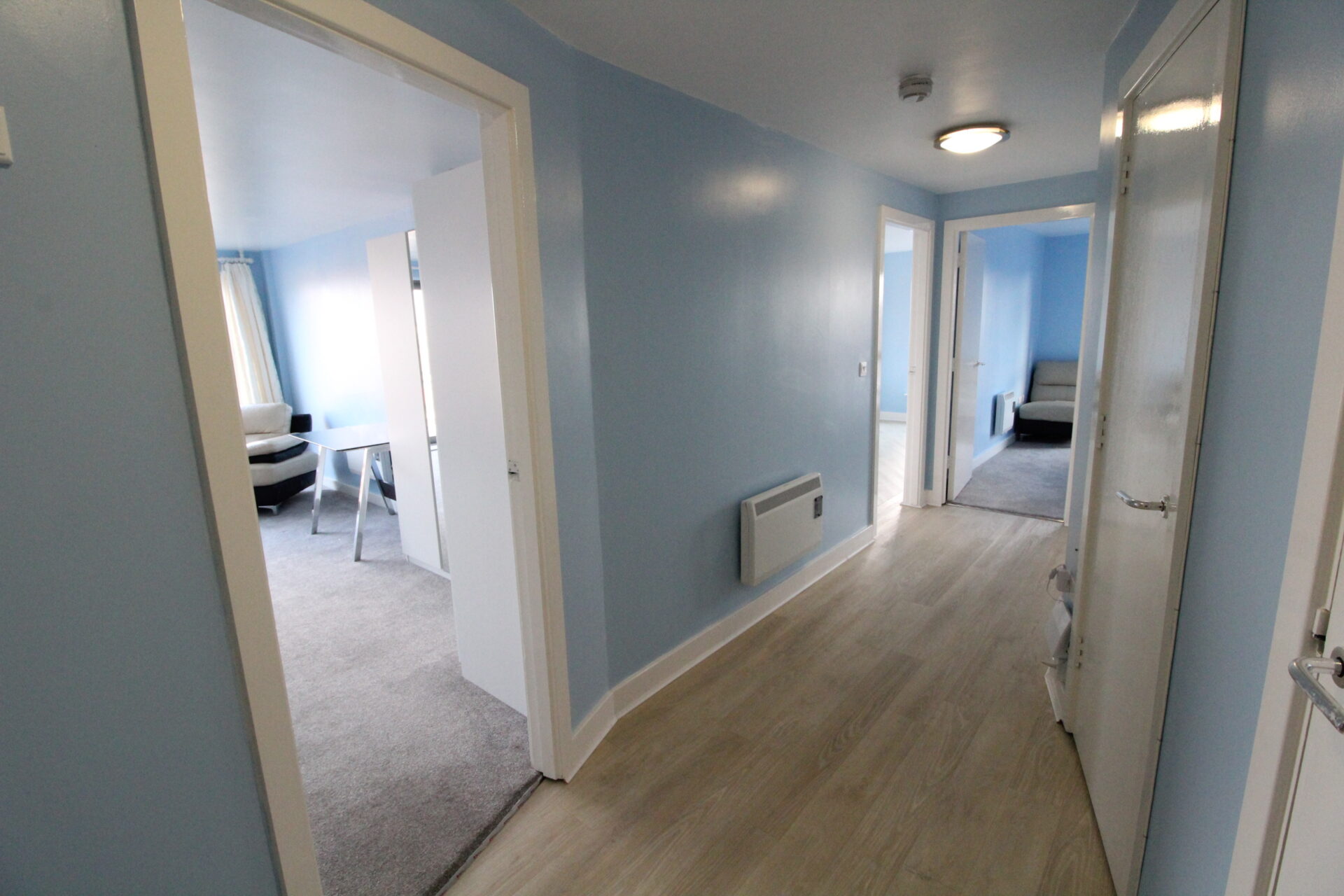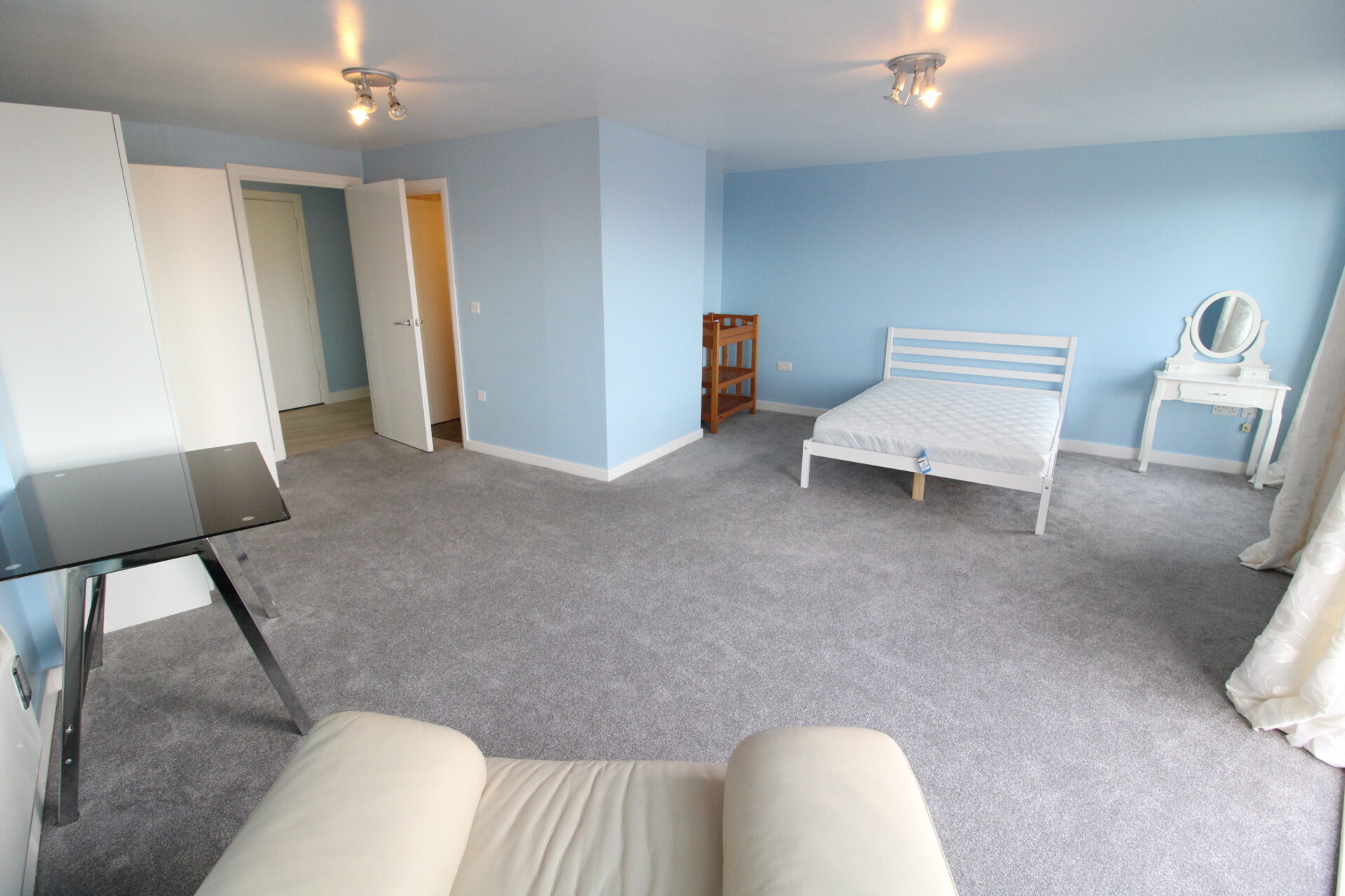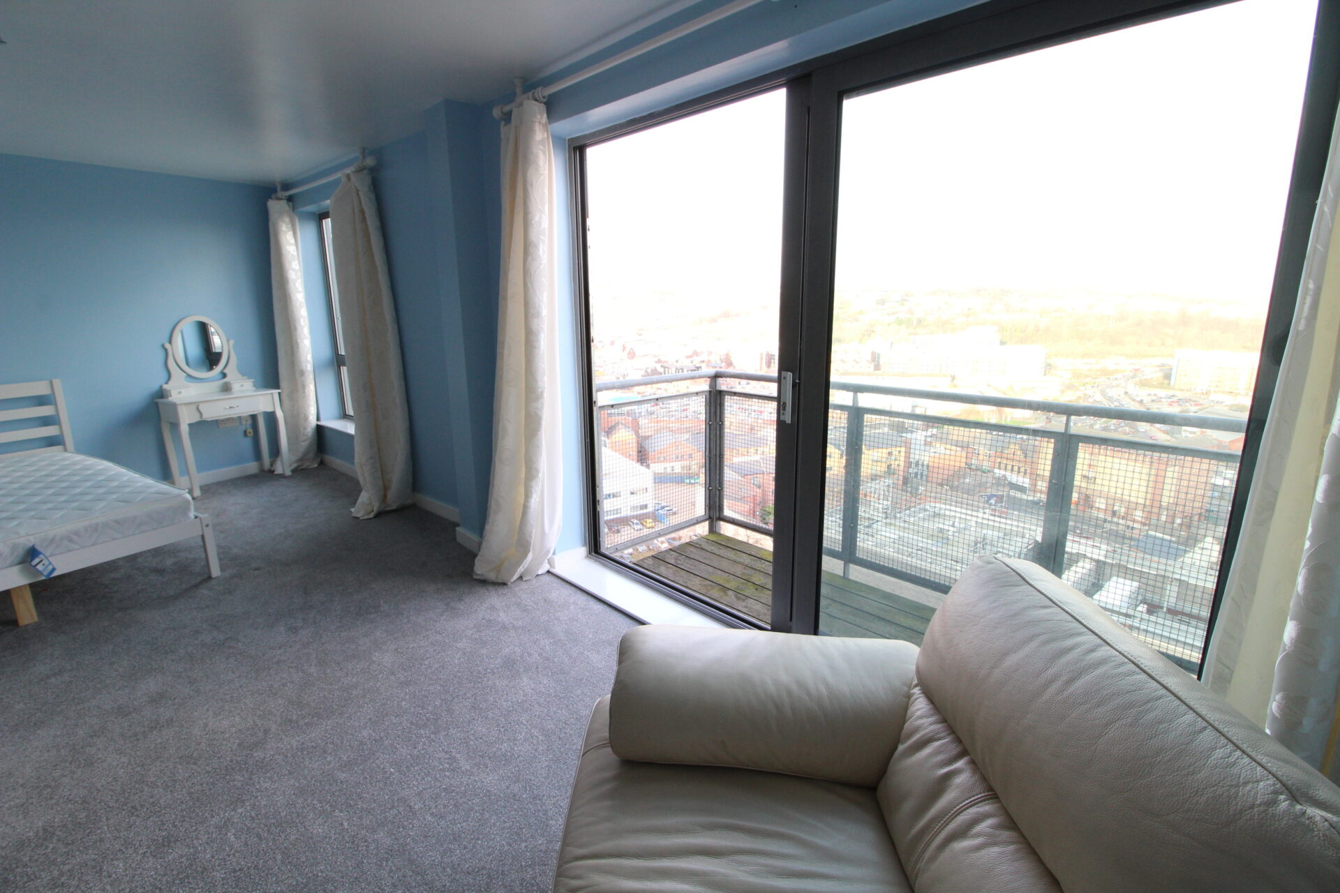 The property comprises two well-proportioned bedrooms. The principal bedroom benefits from a modern en-suite bathroom and its own separate private balcony, offering a peaceful retreat with elevated views. The second bedroom is served by a contemporary family bathroom, finished to a high standard.