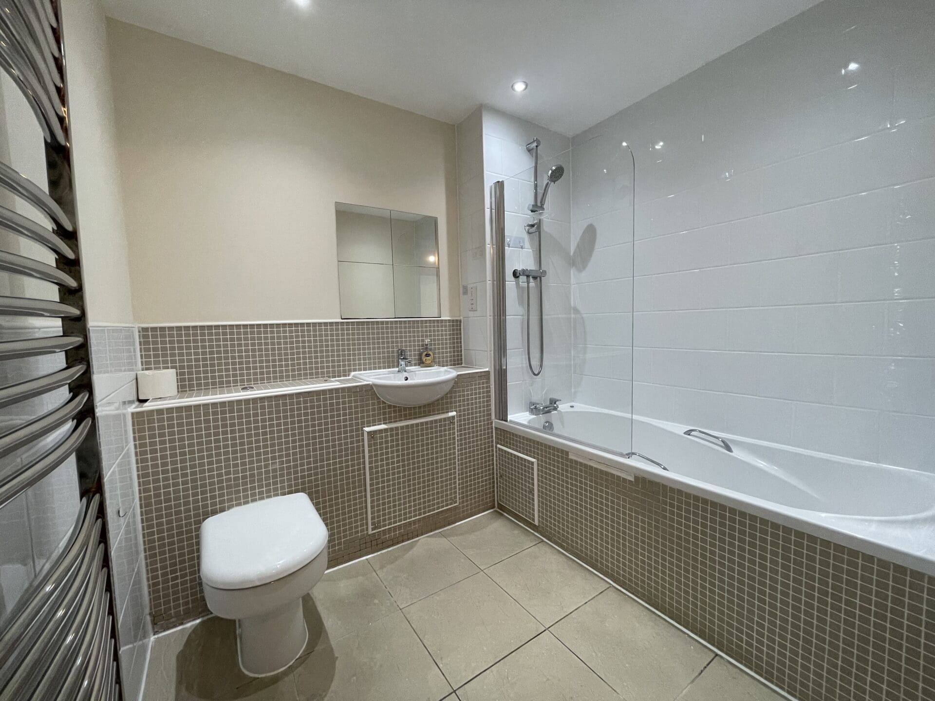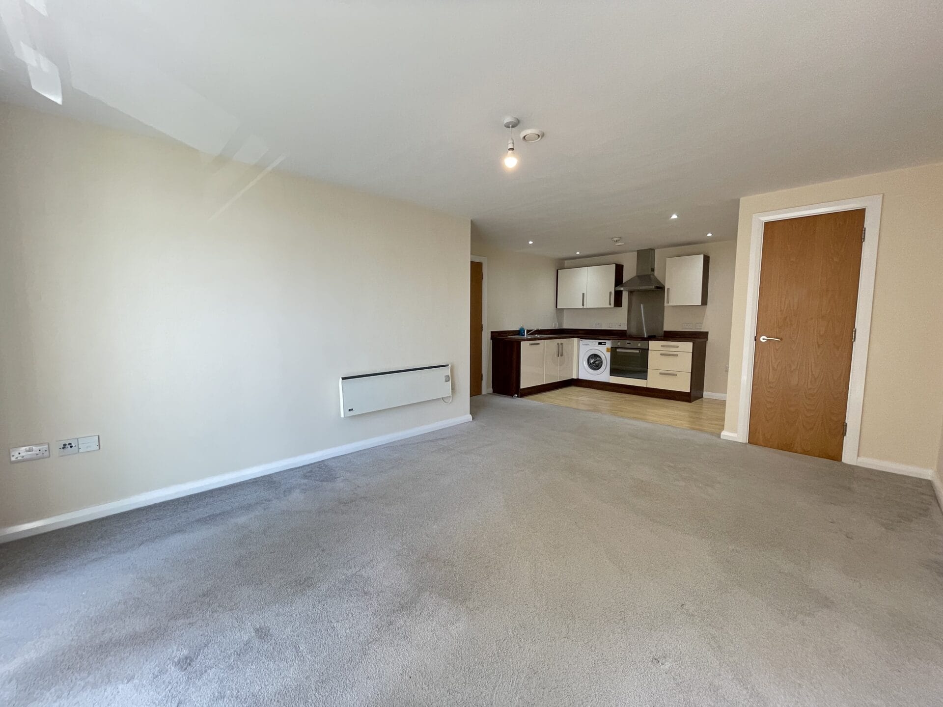 The property features a large open-plan living and kitchen area, with white goods included – a brand new hob and fridge-freezer will be provided on move-in, plus a washing machine is already in place.
