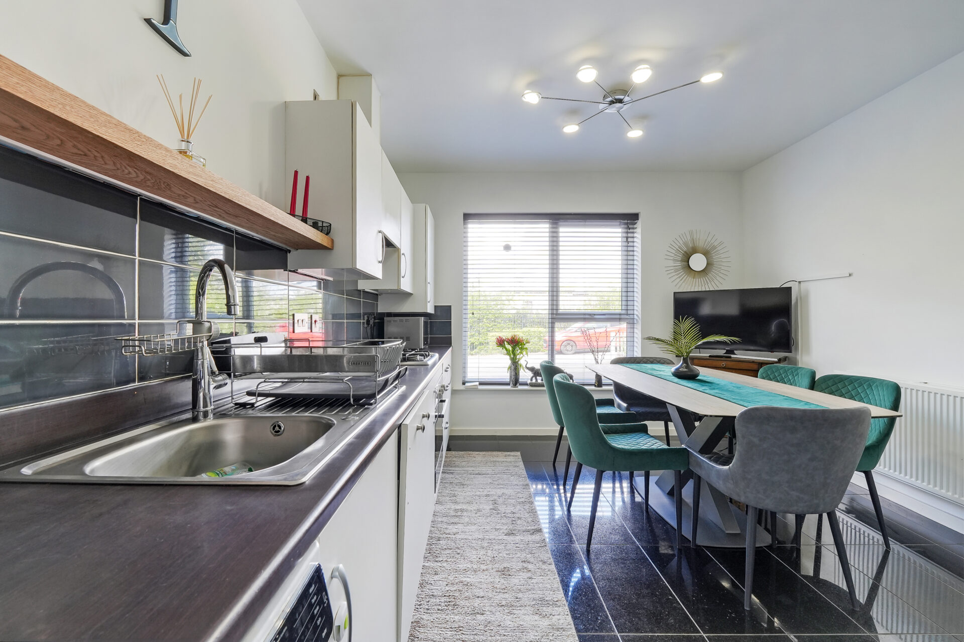 Upon entering the property, you are welcomed into a bright and spacious ground floor, benefitting from underfloor heating, providing both comfort and efficiency. The heart of the home is the large contemporary kitchen/diner, offering ample storage and worktop space, along with plenty of room for dining and entertaining. The ground floor also features a convenient shower room with WC, adding to the practicality of the layout.