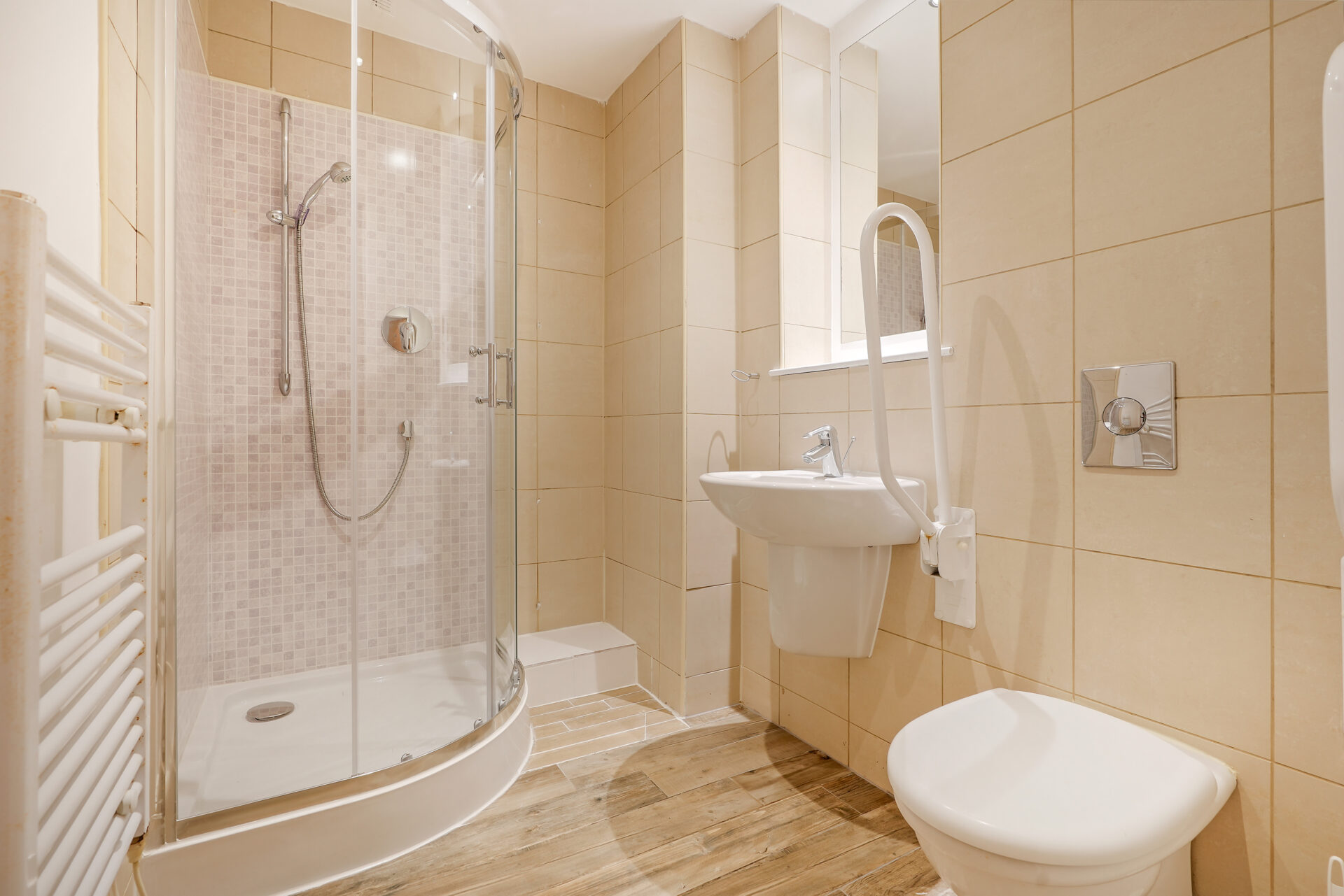 There are two well-sized double bedrooms, both offering excellent floor space and natural light. The principal bedroom benefits from an en-suite shower room, while the second bedroom is served by a separate modern bathroom fitted with a white three-piece suite.